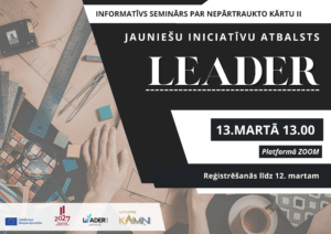 Aicinām piedalīties tiešsaistes informatīvajā seminārā par LEADER nepārtraukto kārtu II! Seminārā iepazīstināsim ar aktualitātēm, izstāstīsim svarīgākās lietas un atbildēsim uz jautājumiem par rīcību "Jauniešu iniciatīvu atbalts". Reģistrējies līdz 12. martam šeit: https://ej.uz/seminarsjauniesuiniciativas Lasīt vairāk.....Publicēts : 19.februāris.2026
