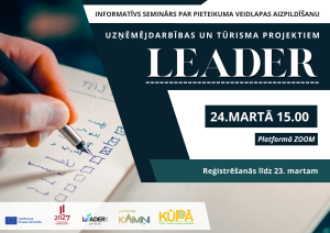 Partnerība "Kaimiņi" sadarbībā ar Preiļu-Līvānu novadu partnerību "Kūpā" 24. martā, plkst. 15.00, organizē informatīvu tiešsaistes semināru Zoom patformā par pieteikuma veidlapas aizpildīšanu uzņēmējdarbības un tūrisma LEADER projektiem. Seminārā ar labās prakses piemēriem un ieteikumiem veidalapas aizpildīšanā dalīsies Daiga Gargurne, biedrības "Sateka" vadītāja no Gulbenes novada. Aicinām pieteikties, aizpildot pieteikuma anketu Lasīt vairāk.....Publicēts : 17.marts.2026