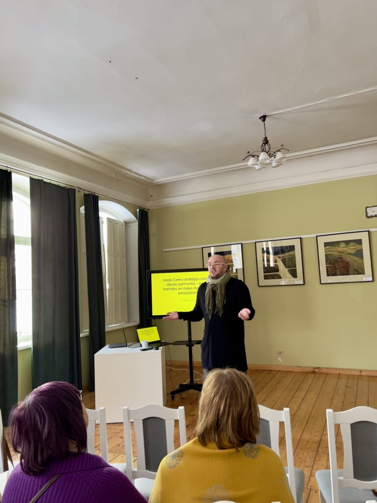 Kā viena no aktivitātēm Abulas lauku partnerības “Viedie ciemi” projektā ir viedo ciemu stratēģiju izveide – Āris Ādlers iepazīstināja kopienu ar stratēģijas veidošanas metodiku un tās nepieciešamību.