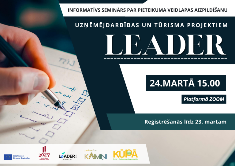 Partnerība “Kaimiņi” sadarbībā ar Preiļu-Līvānu novadu partnerību “Kūpā” 24. martā, plkst. 15.00, organizē informatīvu tiešsaistes semināru Zoom patformā par pieteikuma veidlapas aizpildīšanu uzņēmējdarbības un tūrisma LEADER projektiem.